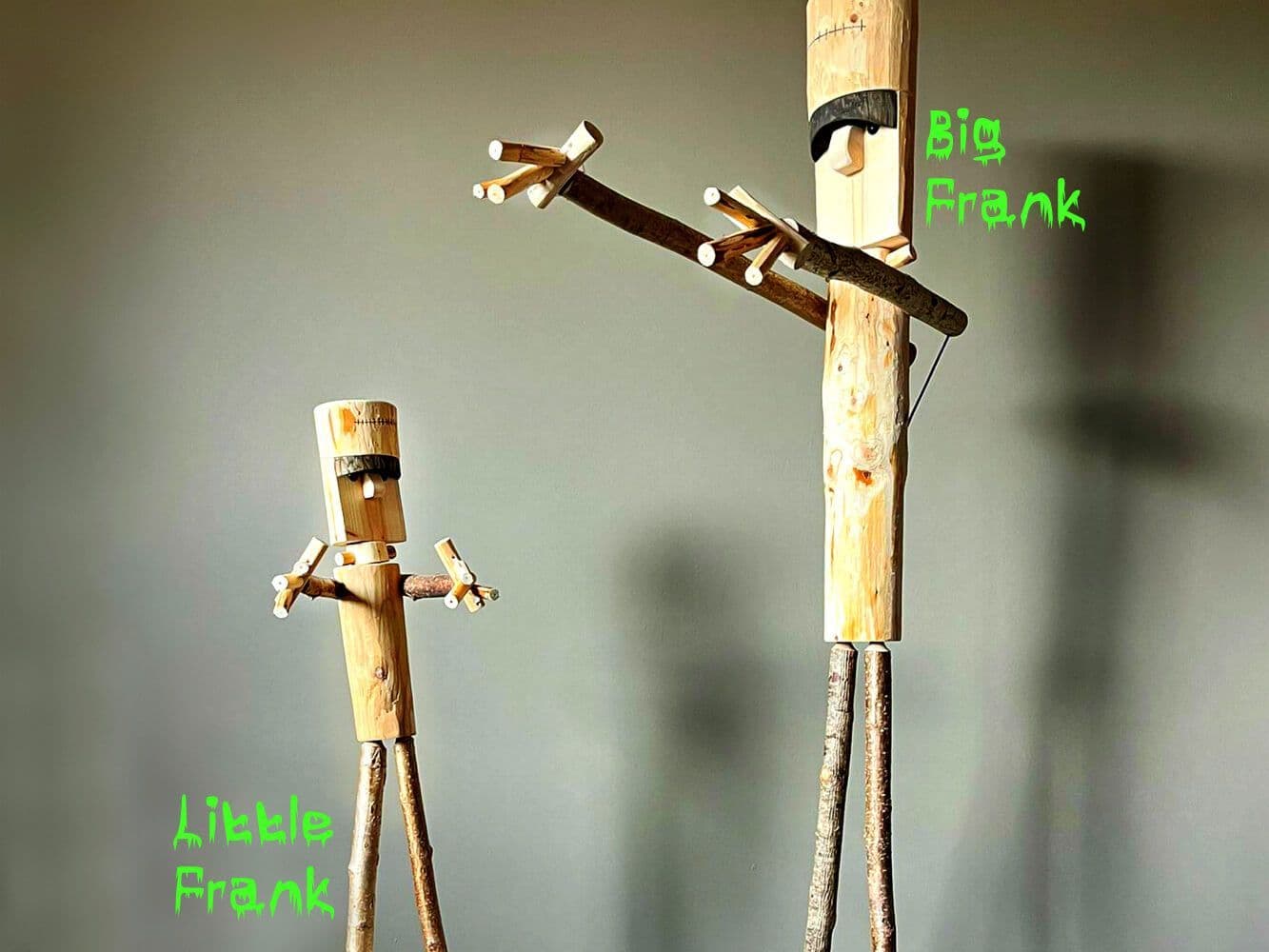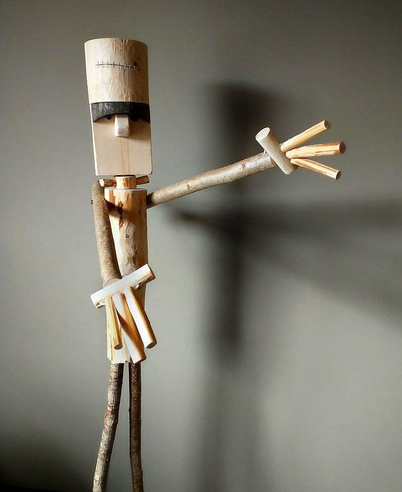 - Rustic wooden Frankenstein's Monster stick man.